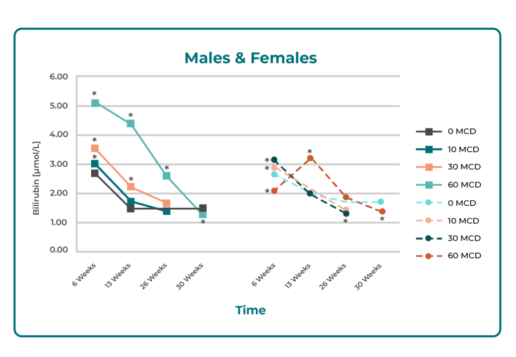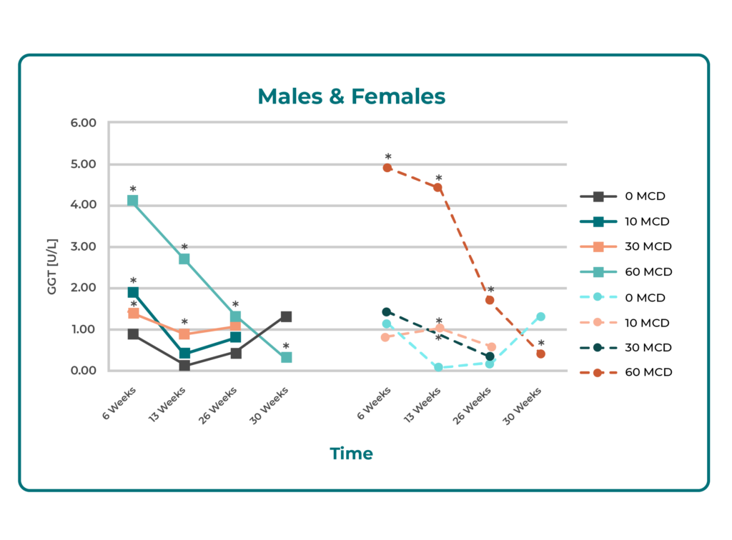 In Vitro Studies: (Not shown in slide): Human and rat liver cell models showed no significant cytotoxicity or changes in liver enzyme activity.
